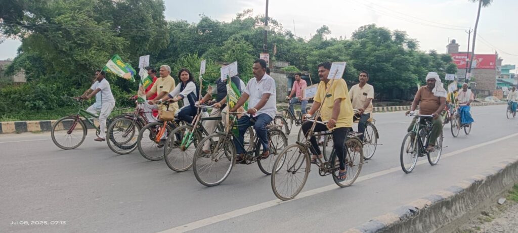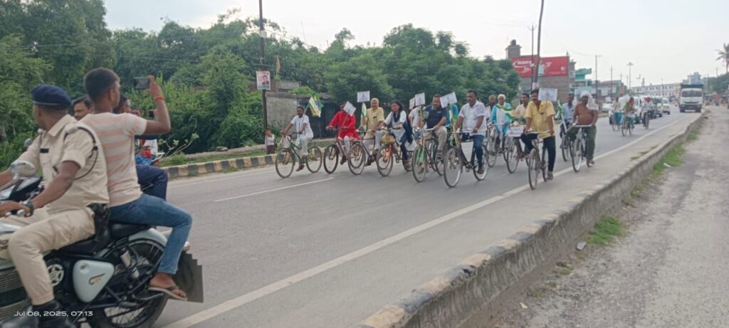 मतदाता विशेष पुनरीक्षण अभियान के तहत मतदाताओं में जन-जागरूकता फैलाने के उद्देश्य से जनता दल यूनाइटेड (जदयू) द्वारा मंगलवार को बगहा नगर के मलपुरवा से भव्य साइकिल रैली का आयोजन किया गया। यह रैली नगर के मलपुरवा से लेकर बगहा अंचल तक का सफर कर निकाली गई।