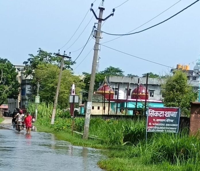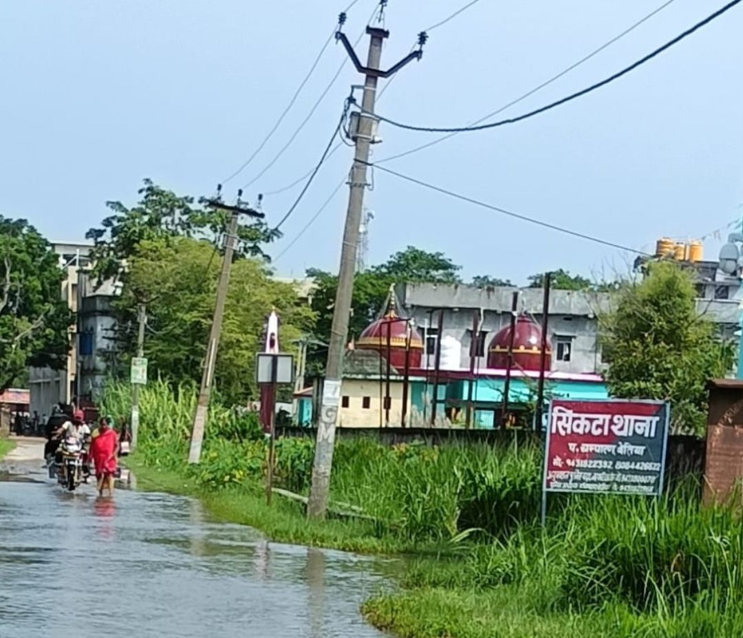 सिकटा। प्रखण्ड मुख्यालय सिकटा की स्थिति इन दिनों बेहद चिंताजनक बनी हुई है। सिकटा थाना के ठीक सामने बारिश का पानी जमा होने से सड़क पर लंबे समय से जल-जमाव की समस्या बनी हुई है। लगातार बरसात के बाद निकासी की समुचित व्यवस्था न होने के कारण सड़क पर पानी का ठहराव कई सप्ताह तक बना रहता है, जिससे आम लोगों का आवागमन बाधित हो रहा है।