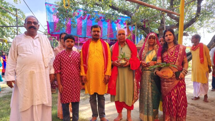 आचार्य विपुल तिवारी ने वैदिक मंत्र उच्चारण के बीच मुख्य अतिथि राहुल कुमार अध्यक्ष भरत राज उपाध्यक्ष शंभू शाह यजमान दिलीप कुशवाहा राजवंती देवी रामेश्वर प्रसाद आदि से फीता कटवा कर जल मेंशोभा यात्रा का शुभारंभ कराया। इस जल शोभा यात्रा में सचिव सुरेंद्र प्रसाद लालू सहनी चंदेश्वर प्रसाद राम अवतार पासवान जोगिंदर सहनी मुन्ना कुमार अनिल कुमार राजू कुमार नारायण मिश्र मनोज कुमार सुरेश प्रसाद समेत भारी संख्या में महिला श्रद्धालु भी शामिल रहे।