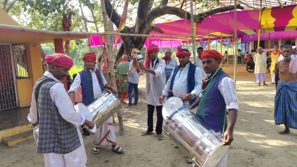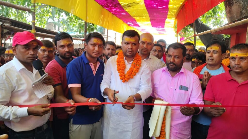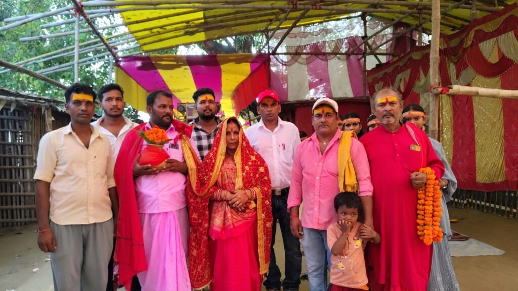 पूजा के आचार्य गुड्डू चौबे अरविंद चौबे तथा यजमान भाजपा नेता भिखारी सिंह और उनकी पत्नी गीता देवी है।