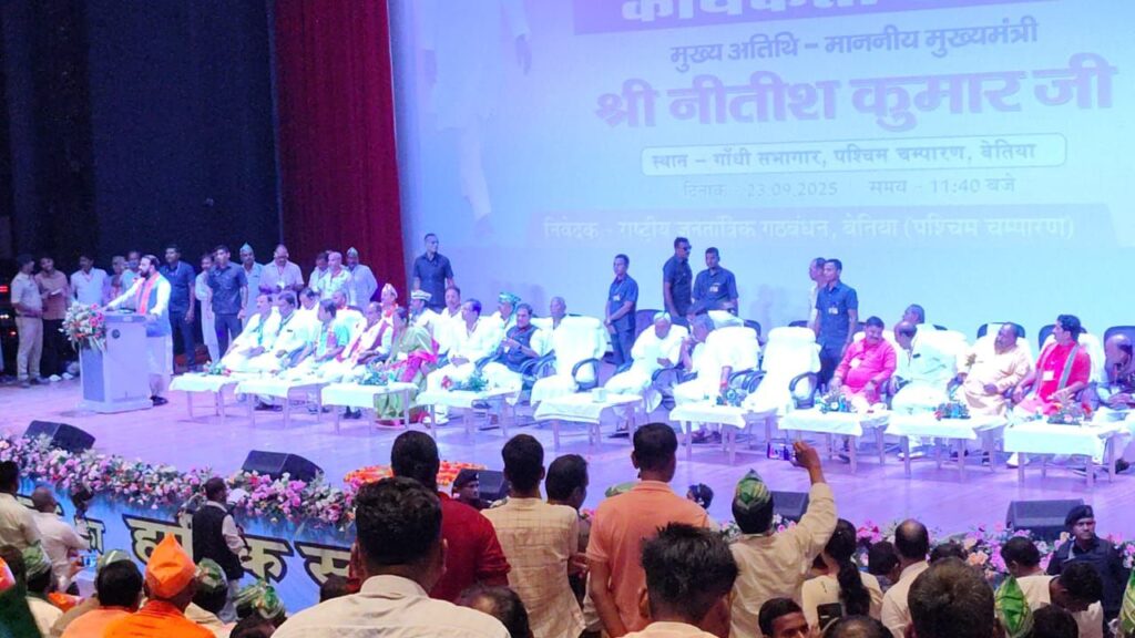 मुख्यमंत्री ने आगामी विधानसभा चुनाव में बिहार में एक बार फिर से एनडीए गठबंधन की डबल इंजन की सरकार बनाने की जोरदार वकालत की है और कहा है कि बिहार को सबसे विकसित राज्य की श्रेणी में लाने के लिए सबको संकल्पित होना होगा तथा पश्चिम चंपारण जिले के सभी विधानसभा सीटों से एनडीए गठबंधन के प्रत्याशी को जीताकर एक बार फिर से डबल इंजन की सरकार बनाने मैं सहायता करनी है।