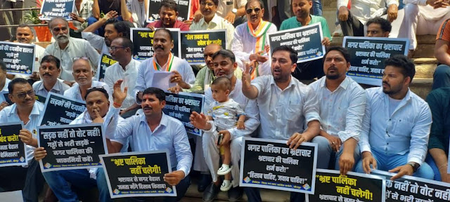 नगर पालिका घोटालों पर कांग्रेस का हल्ला बोल, मंत्री से इस्तीफ़े की माँग