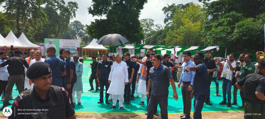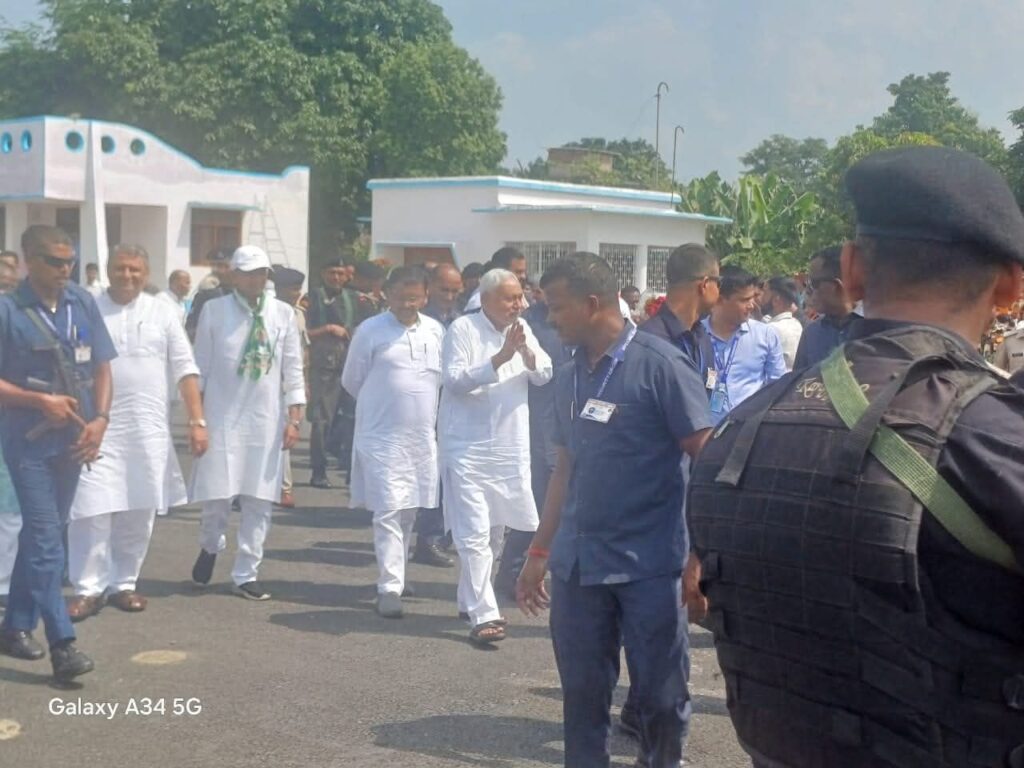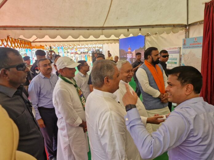 वाल्मीकि नगर (प. चंपारण)। मुख्यमंत्री नीतीश कुमार ने मंगलवार को वाल्मीकि नगर के दौरे में लगभग 1100 करोड़ रुपये की विभिन्न योजनाओं का शिलान्यास कर क्षेत्र को बड़ी सौगात दी। इस मौके पर उपमुख्यमंत्री सम्राट चौधरी और वित्त मंत्री विजय कुमार चौधरी भी मौजूद रहे। मुख्यमंत्री का स्वागत करने के लिए हजारों की भीड़ कार्यक्रम स्थल पर जुटी और तालियों व नारों से उनका जोरदार अभिनंदन किया। अपने संबोधन में उन्होंने कहा कि सरकार की प्राथमिकता गरीब, किसान और महिलाओं को सशक्त बनाना है। उन्होंने महिलाओं से सीधा संवाद कर योजनाओं का लाभ उठाने की अपील की।