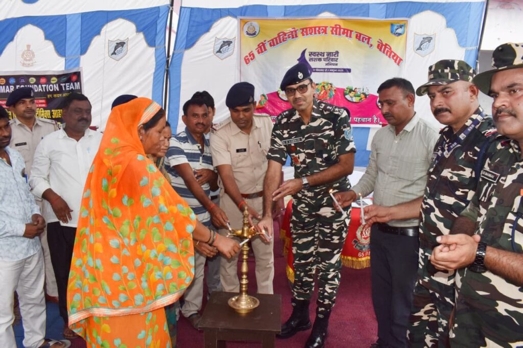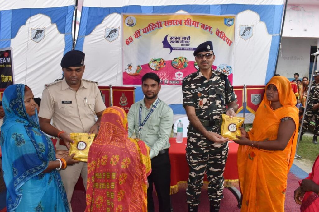 रामनगर, 24 सितम्बर। 65 वाहिनी सशस्त्र सीमा बल बेतिया के कमांडेंट श्री नंदन सिंह मेहरा के मार्गदर्शन में बुधवार को ग्राम डुमरी में “स्वस्थ नारी – सशक्त परिवार” अभियान के तहत नि:शुल्क मानव चिकित्सा शिविर, महिलाओं के लिए काउंसलिंग तथा कुमार फाउंडेशन के सहयोग से पौष्टिक आहार वितरण कार्यक्रम का आयोजन किया गया। साथ ही नि:शुल्क पशु चिकित्सा शिविर भी लगाया गया।