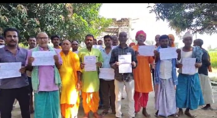 जमाबंदी में हेर फेर का आरोप लगाते हुए ग्रामीण हुए गोलबंद।