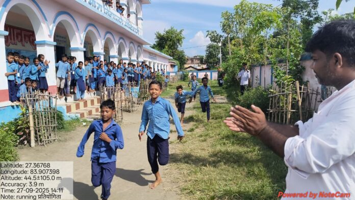 पर्यावरण एवं जलवायु परिवर्तन विभाग के तत्वाधान मे वाल्मीकि ब्याघ्र आरक्ष्य वनप्रमंडल 2 के वाल्मीकिनगर अंतर्गत उत्क्रमित मध्य विद्यालय परिसर मे स्कूली बच्चो की खेलकूद प्रतियोगिता कराई गई।जिसमे प्रथम,दूसरे और तीसरे स्थान पाने वाले प्रतियोगी को पुरुस्कृत किया गया। इसके साथ बच्चो को पर्यावरण संरक्षण की जानकारी दी गई। साथ ही प्रभातफरी निकाल मुहल्लो मे पर्यावरण संरक्षण के लिए जागरूक किया। इस रैली मे वनपाल,वनरक्षी समेत बड़ी संख्या मे स्थानीय लोग शामिल रहे। बतादे की 17 सितंबर से 2 अक्टूबर तक स्वजलता,स्वच्छ भारत,हर घर स्वच्छता एवं स्वदेशी अपनाओ अभियान सेवा पर्व मनाया जा रहा हैं। प्रतियोगिता कार्यक्रम के दौरान ऊँची जंप,लॉन्ग जंप आदि कराया गया। प्रधानाध्यापक, शिक्षकगण एवं वनपाल सूरज राम,वनरक्षी रंजन कुमार,राकेश, पिंटू कुमार मौजूद थे।