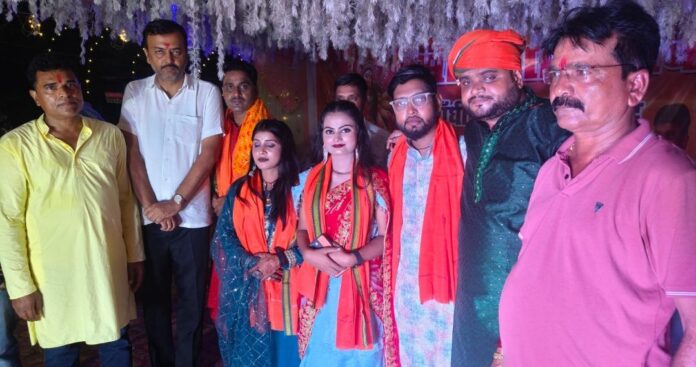 औरंगाबाद – थाना क्षेत्र के गांधीनगर स्थित दुर्गा पंडाल में मां दुर्गा क्लब के सौजन्य से भव्य देवी जागरण कार्यक्रम का आयोजन किया गया। कार्यक्रम का शुभारंभ मां दुर्गा क्लब के अध्यक्ष- चुलबुल सिंह, उपाध्यक्ष- प्रकाश यादव, धर्मेंद्र यादव, अभय कुमार गुप्ता ,सचिव- छोटेलाल सिंह , उपसचिव- कुलवंत सिंह,कोषाध्यक्ष – धर्मेंद्र कुमार सिंह , विपिन सिंह,अविनाश कुमार एवं सम्मानित सदस्य- अमित कुमार सोनू ठाकुर, नीरज कुमार और चंदन कुमार ने संयुक्त रूप से दीप प्रज्वलित करके किया तत्पश्चात फीता काटकर मंच के कार्यक्रम का शुभारंभ कराया गया। अध्यक्ष चुलबुल सिंह ने कहा कि मां दुर्गा क्लब गांधीनगर द्वारा विगत कई वर्षों से शारदीय नवरात्र के मौके पर पंडाल बनाकर दुर्गा माता की पूजा अर्चना की जाती है। यह पूजा पूर्ण रूपेण इको फ्रेंडली होती है। अगले वर्ष तक इस मंदिर की प्राण प्रतिष्ठा हो जाएगी। सचिव- छोटेलाल सिंह ने कहा कि आदिशक्ति जगत जननी मां जगदंबा की पूजा करने से समस्त विघ्न बाधाओं का नाश होता है। धर्मेंद्र कुमार सिंह ने कहा कि दूर-दूर से आए कलाकारों द्वारा भक्तिमय कार्यक्रम की प्रस्तुति हो रही है।