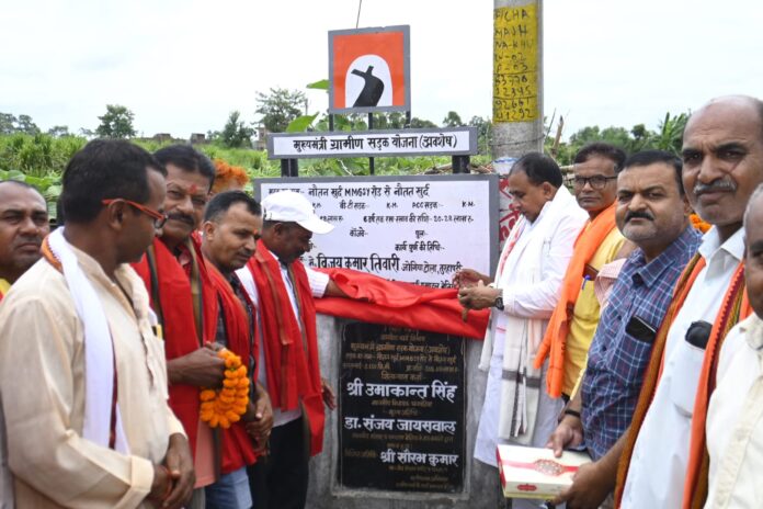 चनपटिया विधायक उमाकांत सिंह ने अपने विधानसभा क्षेत्र में कई सड़कों का शिलान्यास शुक्रवार को नारियल फोड़कर व फीता काटकर किया। चनपटिया विधायक उमाकांत सिंह ने अपने सम्बोधन में कहा कि चनपटिया मझौलिया विधानसभा के मझौलिया के ग्यारह पंचायतों में आजादी के बाद से विकास कार्य नहीं हुआ था। लेकिन यशस्वी प्रधानमंत्री नरेंद्र भाई मोदी और बिहार के मुख्यमंत्री नीतीश कुमार की डबल इंजन की सरकार में मझौलिया के ग्यारह पंचायतों में सड़कों का जाल सा बिछ गया है। सड़क बन जाने के कारण तिरुवाह के सिकरहाना नदी बांध पर जाने में महज 10 से 12 मिनट समय मझौलिया से लग रहा है। उन्होंने बताया कि बैठनिया भानाचक पंचायत में यादव टोला स्थित मझौलिया राजघाट सड़क से महादलित बस्ती भानाचक तक सड़क बनेगी ।वहीं नौतन खुर्द पंचायत में नौतन खुर्द एम एम जी एस वाई से निर्माण होगा जिसकी लंबाई 2.150 किलोमीटर है।जो मुख्यमंत्री ग्रामीण संपर्क योजना (अवशेष) के तहत बन रही हैं इस मौके पर नौतन खुर्द पंचायत के मुखिया सौदागर साह मंडल अध्यक्ष मैनेजर प्रसाद, ओबीसी जिलाध्यक्ष रामेश्वर चौरसिया,ओमप्रकाश पाण्डेय,पंजाबी सिंह,मदन पटेल ,रमेश पाण्डेय, विंध्याचल गद्दी, आदि दर्जनों भाजपा कार्यकता शामिल थे।