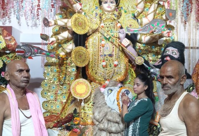 जंदाहा (वैशाली) – विजया दशमी की पूर्व संध्या पर स्थानीय सार्वजनिक दुर्गा स्थान सोहरथी में भव्य देवी जागरण कार्यक्रम का आयोजन किया गया। नीतू रूबी इवेंट शो के देवी जागरण कार्यक्रम का शुभारंभ आनन्द मोहन सिंह, वरिष्ठ सदस्य अखिलेश कुमार सिंह, टुनटुन सिंह ,करी सिंह, राम इकबाल सिंह, सोनू सिंह , विभीषण सिंह, संजय सिंह, सुधीर सिंह, नीरज सिंह एवं राहुल सिंह ने संयुक्त रूप के दीप प्रज्वलित करके किया । अध्यक्ष आनंद मोहन सिंह ने कहा कि इस गांव को प्रसिद्धि लोकप्रिय पहलवान स्वर्गीय रामसनेही सिंह ने दिलाई। वे एक राष्ट्रीय स्तर के पहलवान थे। भूमि दाता औदान सिंह की प्रशंसा की गई। जिन्होंने सात बिगहा जमीन मंदिर को दान दिया था। एस. एम राधा कृष्ण झांकी ग्रुप औरंगाबाद के कलाकारों की प्रस्तुतियों ने सबका मनमोह लिया। गायक धर्मेंद्र धड़कन द्वारा गाए गए भोजपुरी लोकगीतों पर देर तक तालियां बजती रही ।बिहार की लोकप्रिय गायिका नीतू रूबी के अच्छे भजनों की खूब प्रशंसा हुई। टी.डी.एस म्यूजिकल बैंड के कलाकारों ने अपने मधुर वादन से कार्यक्रम की सफलता में चार चांद लगा दिया। तेज बारिश ने भी भक्तों के उत्साह को कम नहीं होने दिया। धन्यवाद ज्ञापन आनंद मोहन सिंह एवं राम इकबाल सिंह ने किया। स्वरांजलि सेवा संस्थान के कलाकारों द्वारा दी गई विभिन्न प्रस्तुतियां सराहनीय रही। इसे श्रोताओं ने काफी पसंद किया। इस मौके पर कलाकार तुलसी कुमार, नृत्य निर्देशक सुनील कुमार, दिलीप सिंह, रवींद्र सिंह, रामकुमार सिंह ,गौरव कुमार, अमित सिंह ,विनय सिंह, दिनेश सिंह, सरपंच पुष्पा देवी, शिक्षिका अनीता देवी, प्रद्युम्न सिंह ,पुजारी कारी सिंह, अभिनेत्री रानी कुमारी,अंशिका कुमारी, राहुल कुमार ,एवं मंटू कुमार भी उपस्थित थे ।