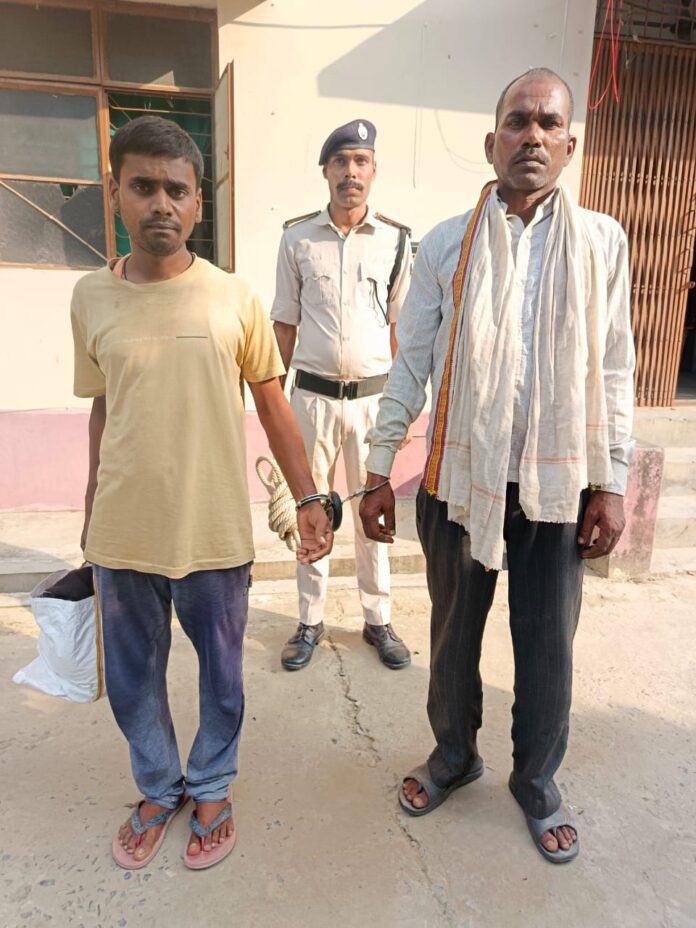 पश्चिम चंपारण जिले में मद्य निषेध कानून को सख्ती से लागू करने के तहत पुलिस द्वारा लगातार छापेमारी अभियान चलाया जा रहा है। इसी क्रम में दिनांक 16 अक्टूबर 2025 की संध्या में भीतहा थाना पुलिस ने गुप्त सूचना के आधार पर छापेमारी करते हुए दो लोगों को गिरफ्तार किया है। मामले की जानकारी देते हुए थाना प्रभारी अभिलाष कुमार ने बताया कि ग्राम मुराडीह टांड निवासी संजय बैठा, पिता ध्रुप बैठा, को पुलिस ने 09 लीटर बंटी-बबली देशी शराब के साथ रंगे हाथों पकड़ा। वहीं, दूसरे मामले में ग्राम खैरवा निवासी नथुनी राम, पिता बंहू राम, को नशे की हालत में पाया गया। दोनों व्यक्तियों को मौके पर गिरफ्तार कर थाना लाया गया।