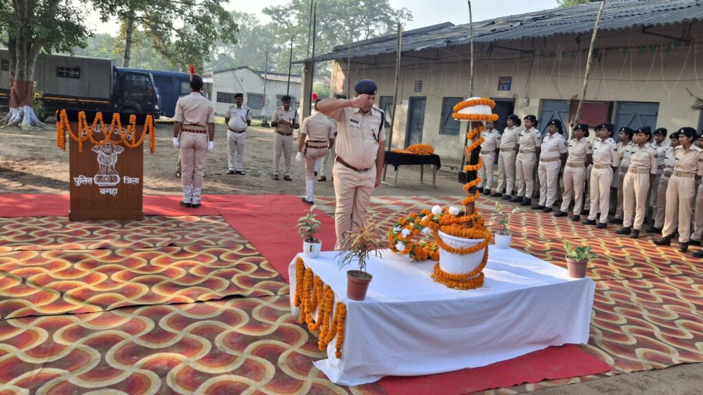 बगहा। आज दिनांक 21 अक्तूबर 2025 को पुलिस जिला बगहा के पुलिस केंद्र परिसर में पुलिस स्मारक दिवस श्रद्धा और सम्मान के साथ मनाया गया। इस अवसर पर वर्ष 2024-2025 के दौरान शहीद हुए पुलिस जवानों को नमन करते हुए उन्हें श्रद्धांजलि अर्पित की गई।कार्यक्रम का नेतृत्व पुलिस अधीक्षक बगहा सुशांत कुमार सरोज ने किया। उन्होंने शहीद पुलिसकर्मियों के नामों का वाचन किया और सभी अधिकारियों एवं पुलिसकर्मियों ने दो मिनट का मौन रखकर वीर जवानों को श्रद्धांजलि दी।