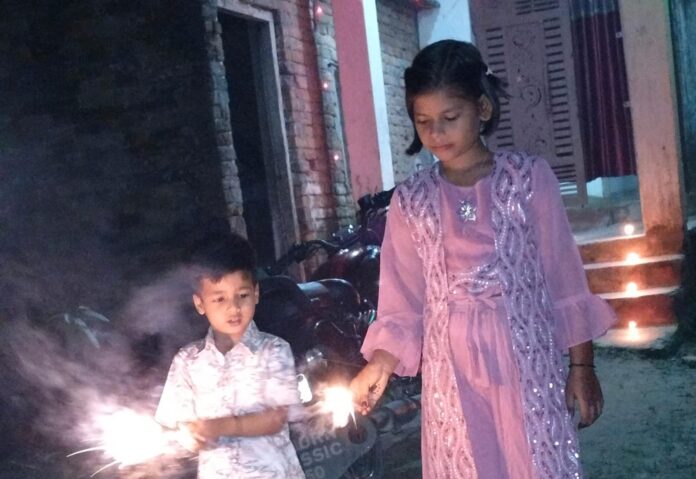 मधुबनी। पूरे देश में दीपावली का पर्व इस बार भी धूमधाम और पारंपरिक उत्साह के साथ मनाया गया। रोशनी, खुशियों और अपार ऊर्जा से भरे इस पर्व की चमक मधुबनी गांव में भी देखने को मिली। दीपों की जगमगाहट और बच्चों की हंसी ने पूरे गांव का माहौल रोशन कर दिया। गांव के छोटे-छोटे बच्चों ने अपने घरों और आंगनों को दीयों से सजाया तथा रंगोली बनाकर दीपावली का स्वागत किया। शाम ढलते ही आसमान में पटाखों की आवाज़ गूंज उठी और हर ओर रोशनी का उत्सव फैल गया। बच्चों ने रंग-बिरंगे पटाखे फोड़कर खूब आनंद लिया।