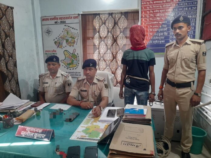 सिवान, 24 अक्टूबर। महाराजगंज थाना पुलिस ने गुप्त सूचना के आधार पर की गई कार्रवाई में एक व्यक्ति को अवैध हथियार के साथ गिरफ्तार किया है। जानकारी के अनुसार, दिनांक 24 अक्टूबर को पुलिस को सूचना मिली कि आकाशी मोड़ के पास एक व्यक्ति अपने पास अवैध हथियार छिपाए हुए है। सूचना मिलते ही महराजगंज थाना की टीम ने त्वरित छापामारी की। इस दौरान मौके से एक पिस्टल, दो जिंदा कारतूस तथा एक मोबाइल फोन बरामद किया गया। पुलिस ने मौके से एक व्यक्ति को गिरफ्तार कर लिया।