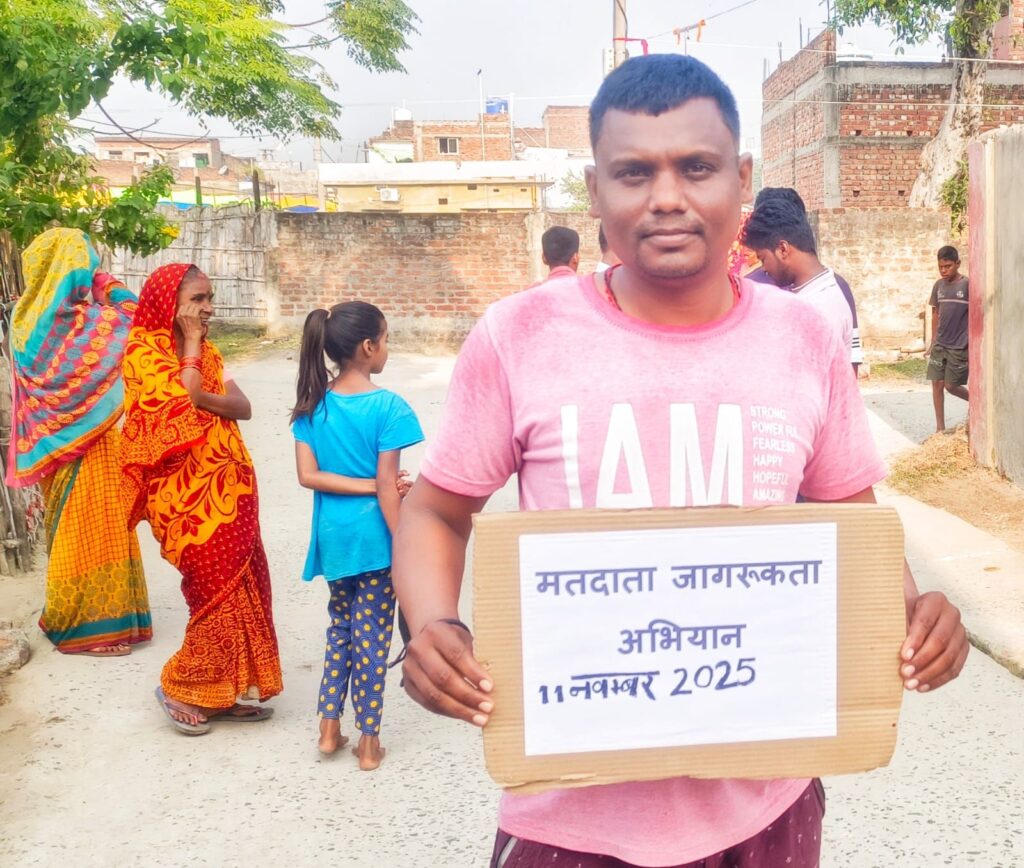 वार्ड 31 महादलित बस्ती में शिक्षक सुनिल ने चलाया मतदाता जागरूकता अभियान
