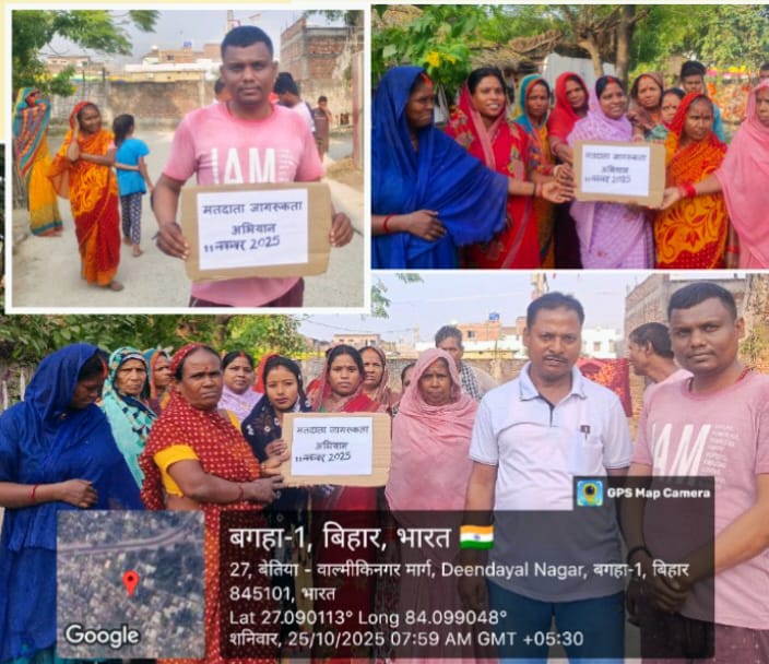 बगहा, शनिवार 25 अक्टूबर, लोकतंत्र का महापर्व आरम्भ है आगामी छः नवंबर और ग्यारह नवंबर को मतदाता अपने मतदान केंद्र पर जाकर अपने मताधिकार का उपयोग करें इसके लिए नगर के महादलित बस्ती वार्ड 31 में शनिवार 25 अक्टूबर को मतदाता जागरूकता अभियान चलाया गया जिसमें शिक्षक सुनिल कुमार, विकास मित्र महेश रजक आदि ने स्थानीय महिला पुरुष व युवा मतदाताओं को जागरूक किया। शिक्षक सुनिल कुमार ने कहा कि मताधिकार हमारा संवैधानिक अधिकार है इसे व्यर्थ नहीं जाने देना चाहिए। 11 नवम्बर 2025 को बिहार विधानसभा आम निर्वाचन 2025 में हर नागरिक मतदान करें, ताकि मजबूत लोकतंत्र और सशक्त बिहार का निर्माण हो।