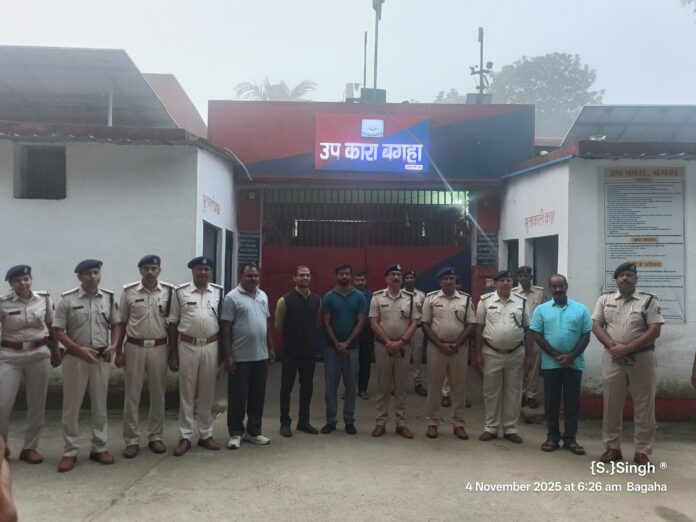 आज दिनांक 04 नवम्बर 2025 को पुलिस अधीक्षक बगहा एवं अनुमंडल पदाधिकारी बगहा द्वारा संयुक्त रूप से उपकारा बगहा का औचक निरीक्षण किया गया। निरीक्षण के दौरान दोनों अधिकारियों ने उपकारा परिसर की सुरक्षा व्यवस्था, कैदियों की जीवन-स्थितियों एवं जेल प्रशासन की कार्यप्रणाली की विस्तृत समीक्षा की।अधिकारियों ने उपकारा के मुख्य द्वार, प्रहरी चौकियों, बैरकों, भोजनालय, चिकित्सा कक्ष एवं अभिलेख कक्ष का बारीकी से निरीक्षण किया। इस दौरान कैदियों के स्वास्थ्य, खान-पान, स्वच्छता तथा आवश्यक सुविधाओं के संबंध में भी जानकारी ली गई। उन्होंने जेलकर्मियों से संवाद कर उनकी ड्यूटी व्यवस्था और दायित्वों की जानकारी प्राप्त की।