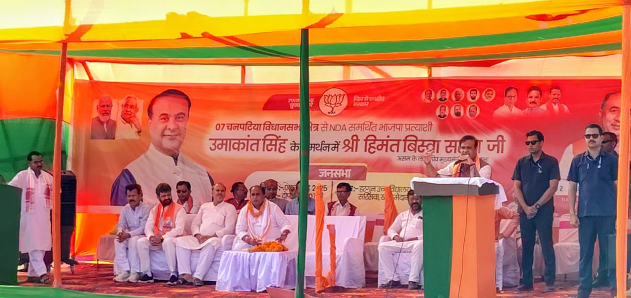चनपटिया विधानसभा क्षेत्र में एनडीए समर्थित प्रत्याशी उमाकांत सिंह के समर्थन में असम के लोकप्रिय मुख्यमंत्री हेमंत विश्व शर्मा