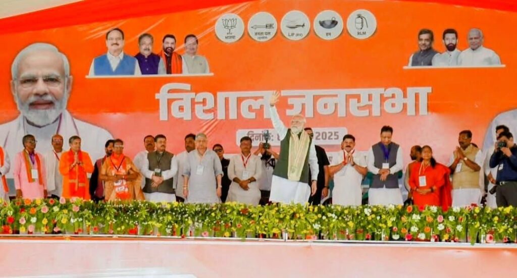 बिहार के पश्चिमी चंपारण जिले के चनपटिया प्रखंड स्थित कुड़िया कोठी मैदान में शनिवार को इतिहास रचने वाला नज़ारा देखने को मिला। जब भारत के यशस्वी, ओजस्वी विचारक और विश्व के लोकप्रिय नेता प्रधानमंत्री नरेंद्र मोदी ने विशाल जनसभा को संबोधित किया। मैदान में जनसमूह का ऐसा उत्साह था मानो पूरा इलाका “मोदी-मोदी” के नारों से गूंज उठा हो। लोग सुबह से ही प्रधानमंत्री के आगमन की प्रतीक्षा में जुटे थे।प्रधानमंत्री मोदी ने अपने जोशीले संबोधन में कहा कि आज भारत दुनिया के मंच पर नई पहचान बना रहा है।