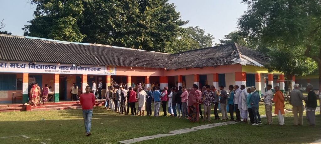वाल्मीकि नगर विधानसभा चुनाव के दूसरे चरण का मतदान शांतिपूर्ण रूप से सम्पन्न हो गया। थनहा ठकरहाँ,मधुबनी,,बितहाँ इंडो नेपाल सीमा वाल्मीकिनगर मे चुनाव शांतिपूर्ण सम्पन्न हुई। सुबह से ही वोटरों की भीड़ बूथों पर उमड़ पड़ी, लोग कतारों मे खड़े होकर अपनी बारी का इंतज़ार कर वोट डाला। पहली बार वोट अधिकार का प्रयोग कर रही सारिका कुमारी ने बताया की वह शिक्षा के मुद्दे पर वोट किया है, वहीं 80 वर्षीय जलसंसाधन विभाग से सेवानिवृत प्रभन्स प्रसाद यादव ने वोट डाला तो वही विकलांग महिला और पुरुष ने भी बढ़ चढ़ कर वोट देने का काम किया ।