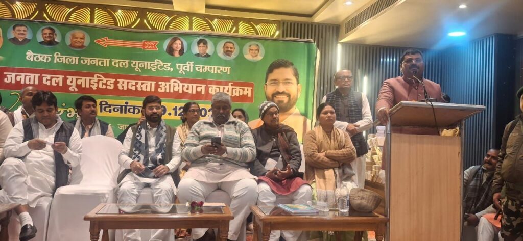 जिला पूर्वी चम्पारण, मोतिहारी स्थित वी.के. गार्डन कॉम्प्लेक्स में जनता दल (यूनाइटेड) के सदस्यता अभियान 2025–2028 का भव्य शुभारंभ जद(यू) के प्रदेश अध्यक्ष सह माननीय विधायक, महनार श्री उमेश सिंह कुशवाहा जी के कर-कमलों द्वारा किया गया।