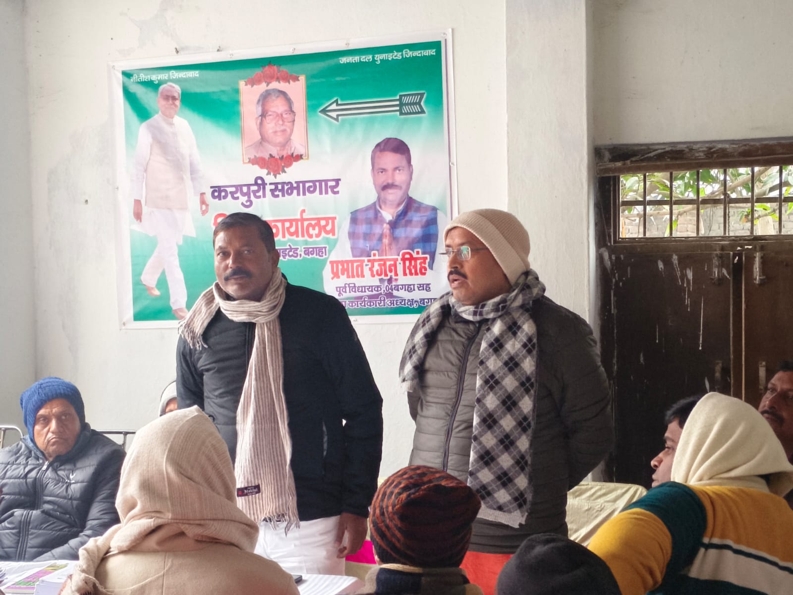बगहा। जदयू कर्पूरी सभागार में आज जनता दल (यूनाइटेड) की एक महत्वपूर्ण संगठनात्मक बैठक आयोजित की गई। बैठक की अध्यक्षता जदयू कार्यकारिणी जिला अध्यक्ष सह पूर्व विधायक प्रभात रंजन सिंह ने की। बैठक का मुख्य उद्देश्य आगामी 25 तारीख को बिहार में ऐतिहासिक जीत की खुशी में बेतिया में आयोजित होने वाले जदयू कार्यकर्ता सम्मान समारोह को सफल बनाने के लिए रणनीति तय करना था।
