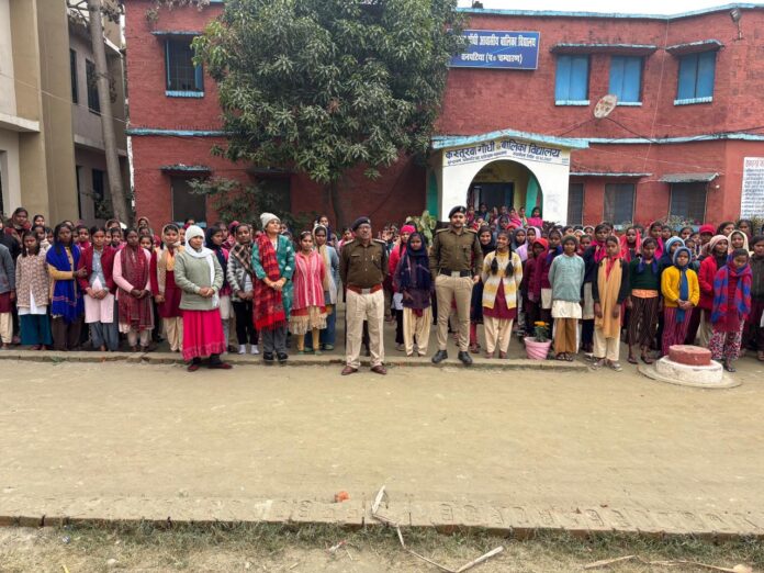 पुलिस अधीक्षक, बेतिया के निर्देश पर निर्भया ब्रिगेड सुरक्षा अभियान के तहत आज समय करीब 11:30 बजे कस्तूरबा गांधी उच्च विद्यालय, कुमारबाग में छात्राओं की सुरक्षा को लेकर विस्तृत परिचर्चा आयोजित की गई। इस दौरान विद्यालय की छात्राओं को उनके अधिकारों, आत्म-सुरक्षा के उपायों एवं किसी भी आपात स्थिति में तत्काल सहायता प्राप्त करने की प्रक्रिया के बारे में विस्तार से जानकारी दी गई।