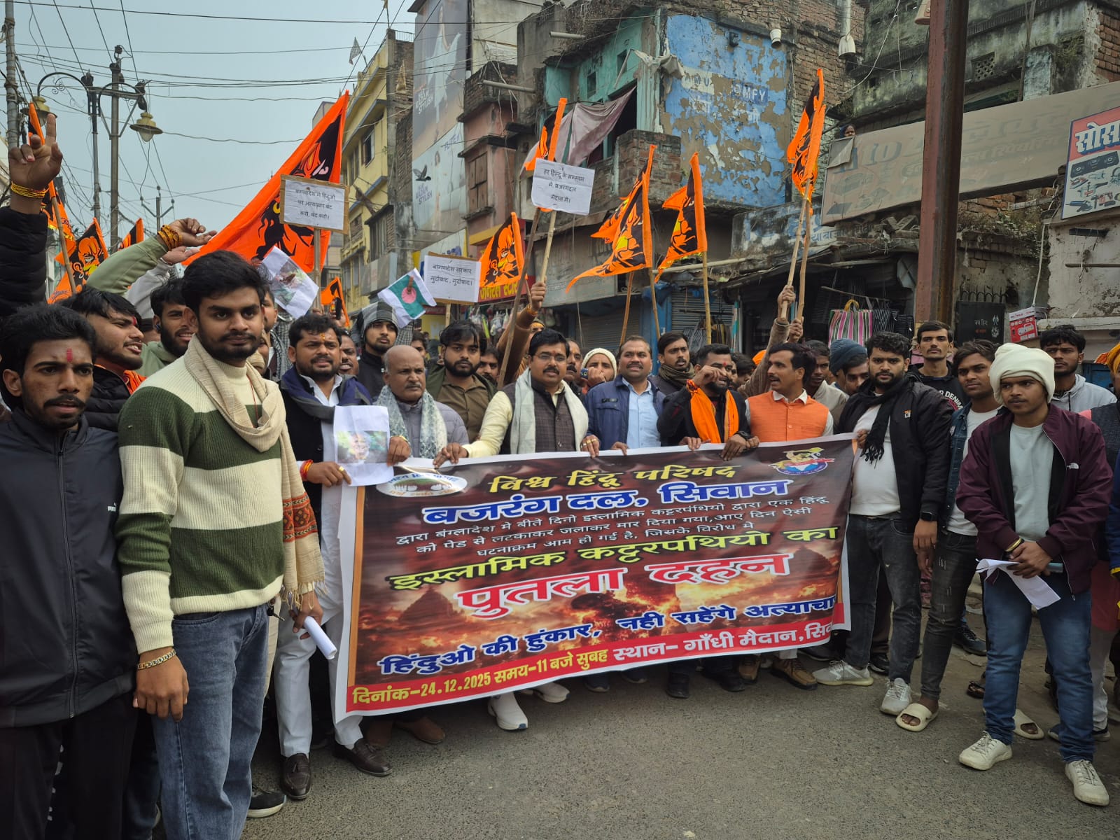 बांग्लादेश में हिंदू समाज पर हो रहे लगातार अत्याचार, मंदिरों पर हमले तथा निर्दोष हिंदुओं के उत्पीड़न के विरोध में विश्व हिंदू परिषद एवं बजरंग दल सिवान इकाई द्वारा आक्रोश मार्च निकाला गया। इस मार्च में बजरंग दल के कार्यकर्ता रंजन कुमार सिंह सहित बड़ी संख्या में हिंदू समाज के लोग उपस्थित रहे।