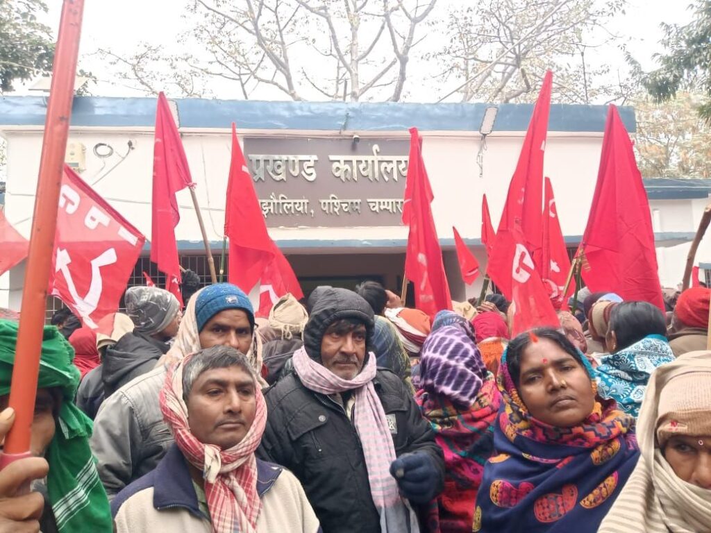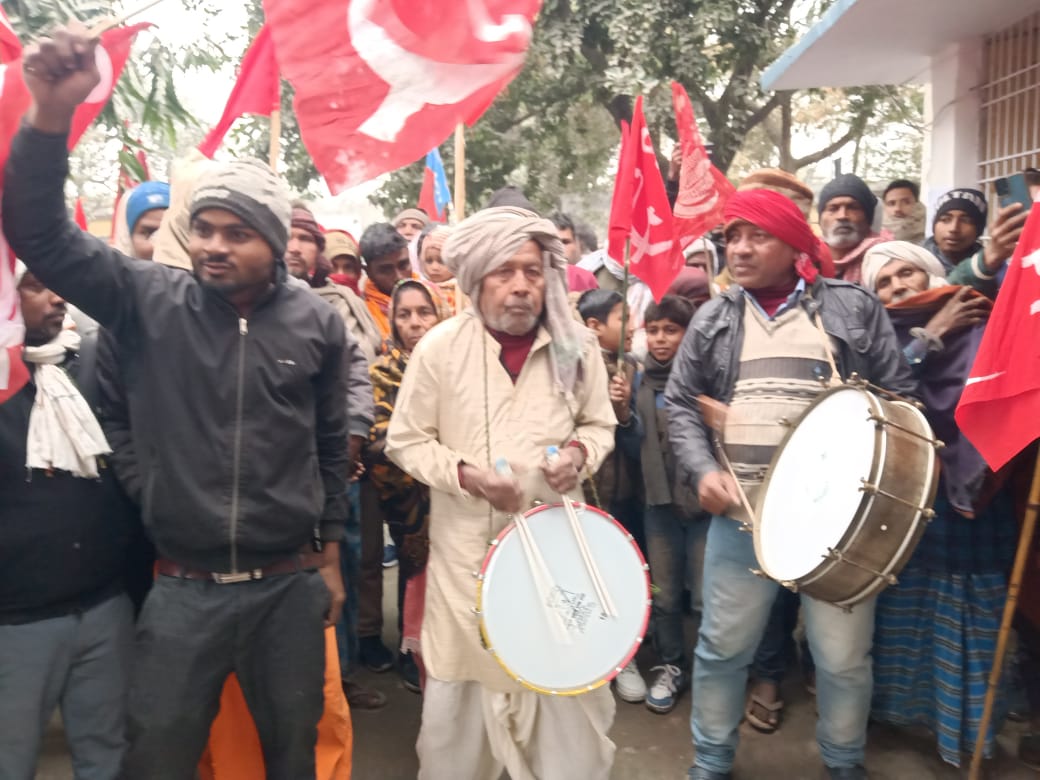 अधिकारियों और कर्मचारियों के विरुद्ध कानूनी कार्रवाई करने की मांग की। इस प्रदर्शन में संजय सोनी इनरमन प्रसाद चौरसिया केदार चौधरी तारकेश्वर सहनी रामदेव राम इसराइल मियां छोटन मियां शांति देवी संगीता देवी तारा देवी पानमती देवी अमेरिका पासवान संगीता देवी मोहम्मद कटया सहित सैकड़ो कामरेड उपस्थित थे। इस दौरान प्रखंड कार्यालय परिसर लाल झंडे से पटा रहा।