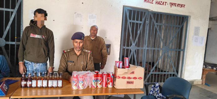 पुलिस द्वारा की गई कार्रवाई में कुल 18 लीटर शराब जब्त की गई, जिसमें 9 लीटर बंटी-बबली देशी शराब, 8 लीटर किंगफिशर बीयर तथा 440 एमएल की 1 लीटर विदेशी रम शामिल है। मौके से एक मोटरसाइकिल भी जब्त की गई है। इस संबंध में एक अभियुक्त को मौके से ही गिरफ्तार कर लिया गया।