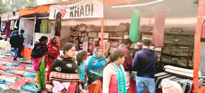 बगहा खादी ग्राम उद्योग प्रदर्शनी बगहा अनुमंडल मैदान में 1 जनवरी से 15 जनवरी तक लगा था। जिसका गुरुवार के दिन अंतिम दिन था। अंतिम दिन खादी ग्रामोद्योग प्रदर्शनी में लोगों की भीड़ देखने को मिली। इस प्रदर्शनी में खादी के कपड़े हाथ से बने फर्नीचर, शाल कंबल, आयुर्वेदिक दवा, ड्राई फ्रूट्स आदि की अच्छी प्रदर्शनी लगी थी। जिसे देखने के लिए गुरुवार को आखिरी दिन लोगों की भीड़ रही। लोगों ने खादी के कपड़ों को खासा तवज्जो दिया। इस मेले में दूर-दूर से आए खादी के दुकानदारों ने भाग लिया। जिसमें हाथ से बने अचार, च्यवनप्राश और आयुर्वेदिक दवा, आदि सामने प्रदर्शनी में देखने को मिली। लोगों ने इसका काफी लुत्फ उठाया इस प्रदर्शनी में एंट्री फ्री थी। बगहा नगर वासियों का कहना है इस तरह के प्रदर्शनी बगहा में लगनी चाहिए। जिससे लोगों का अपने मेक इन इंडिया के बने सामानों की बिक्री हो सकेगी और इससे लघु उद्योगों को बढ़ावा मिलेगा।