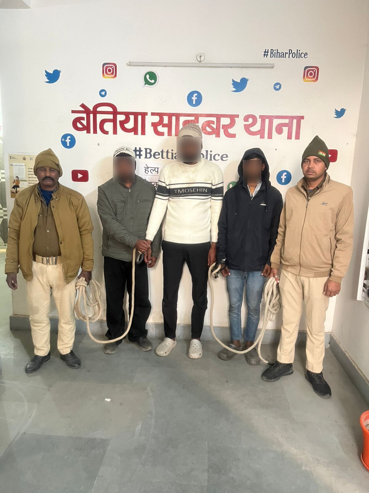 बेतिया पुलिस की बड़ी उपलब्धि 03 साइबर अपराधियों को 08 मोबाइल फ़ोन एवं 09 सिम कार्ड के साथ साथ गिरफ्तार किया गया।