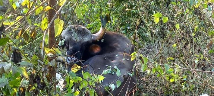 रिहायशी इलाके में जंगली भैंसा (गौर) ने जमाया अपना डेरा