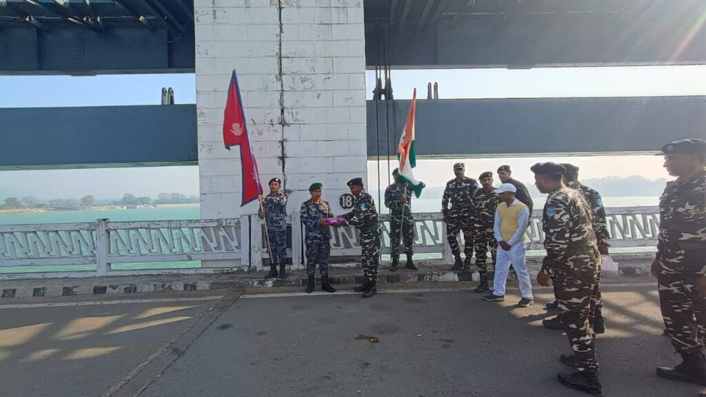 इंडो नेपाल सीमा पर तैनात एसएसबी और नेपाल एपीएफ के सुरक्षा जवानो ने गणतंत्र दिवस के मौके पर मिठाइयों का आदान प्रदान कर एक दूसरे जवानो ने मुँह मीठा कराया।