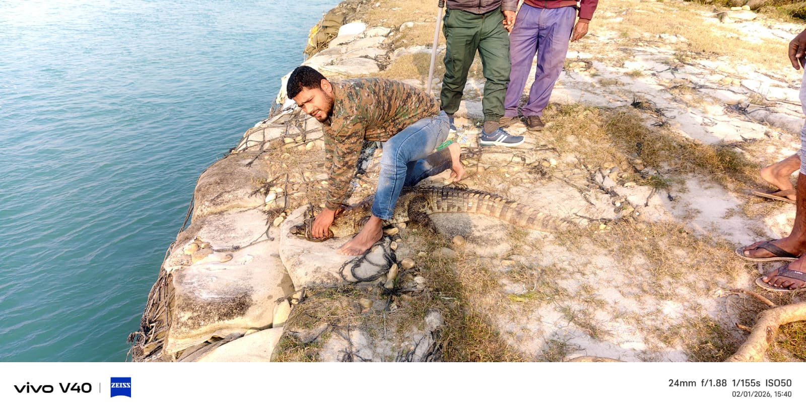 मगरमच्छ का वन विभाग ने किया सुरक्षित रेस्क्यू