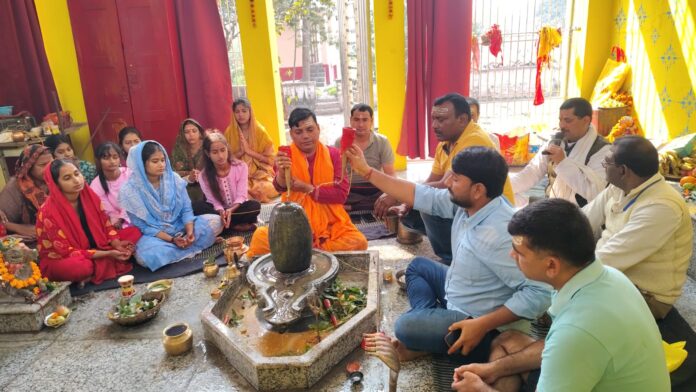 दूध दही गंगाजल शहद चीनी घी आदि से अभिषेक किया।दिनभर भजन-कीर्तन और विशेष आरती का आयोजन किया गया, जिससे वातावरण पूरी तरह भक्तिमय बना रहा।