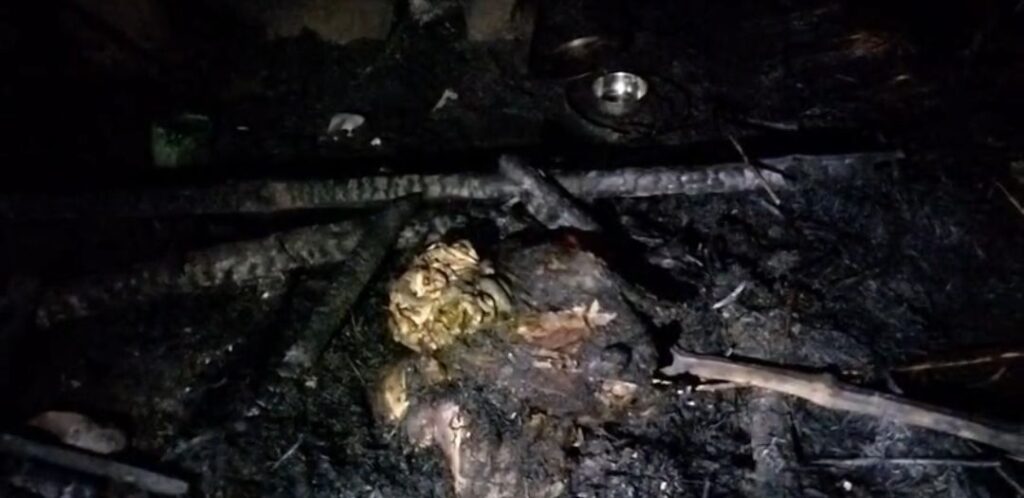 तीन बकरियों समेत नगद रुपया, गहना कपड़ा, अनाज सभी सामग्री राख में तब्दील।