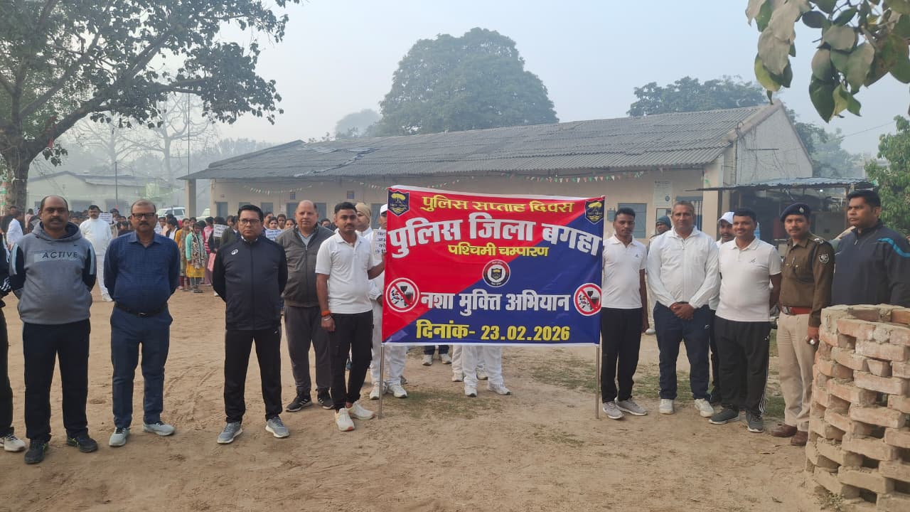 बगहा। समाज को नशा मुक्त एवं सुरक्षित वातावरण प्रदान करने के उद्देश्य से सोमवार को पुलिस प्रशासन द्वारा व्यापक जागरूकता अभियान चलाया गया। रामानंद कौशल, पुलिस अधीक्षक, बगहा के नेतृत्व में पुलिस केन्द्र बगहा से मलकौली चौक तक नशा मुक्ति जागरूकता फ्लैग मार्च निकाला गया। पुलिस अधीक्षक द्वारा हरी झंडी दिखाकर फ्लैग मार्च को रवाना किया गया। मार्च के दौरान पुलिस पदाधिकारियों एवं जवानों ने आमजन, विशेषकर युवाओं को नशे के दुष्परिणामों के प्रति जागरूक किया और उन्हें नशे से दूर रहने की अपील की।