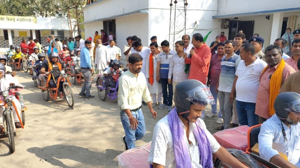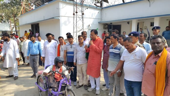 मुख्यमंत्री दिव्यांगजन सशक्तिकरण योजना के तहत आयोजित एक विशेष कार्यक्रम में 36 दिव्यांगजनों के बीच ट्राई साइकिल का वितरण किया गया। इस अवसर पर मुख्य अतिथि के रूप में उपस्थित ने लाभुकों को ट्राई साइकिल प्रदान की। ट्राई साइकिल पाकर दिव्यांगजनों के चेहरे पर खुशी और आत्मविश्वास साफ झलक रहा था।