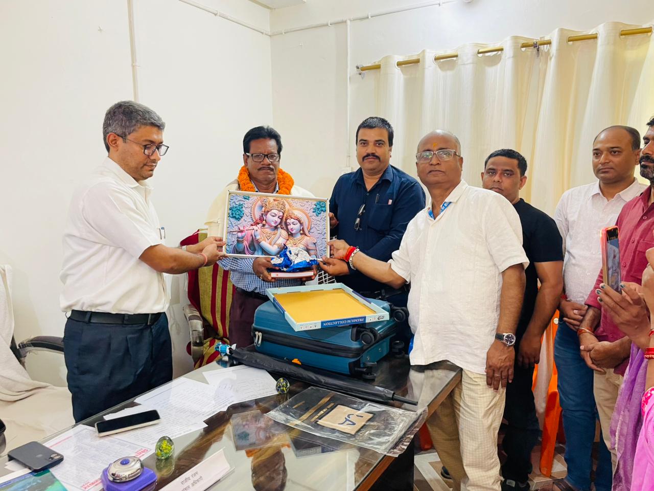 विदाई सम्मान समारोह कार्यक्रम के उपरांत प्रधान लिपिक का अतिरिक्त प्रभार प्रखंड विकास पदाधिकारी डॉ राजीव रंजन कुमार ने अंचल नाजिर अमित कुमार को सौंपते हुए कहा कि अंचल नाजिर अपने कार्य के अतिरिक्त अंचल प्रधान सहायक के प्रभार में भी अपने दायित्व का निर्वहन कर्तव्य निष्ठा पूर्वक करेंगे यहीं मेरी शुभकामना रहेगी इस कार्यक्रम के मौके पर अंचल लिपिक रवि भूषण कुमार अमजद आलम डाटा ऑपरेटर अजय कुमार हसीबुल्लाह विवेक कुमार आरटीपीएस कर्मी अभिषेक श्रीवास्तव संतोष कुमार नवीन कुमार रंजीत कुमार समेत सभी अंचल प्रखंड कर्मी उपस्थित थे