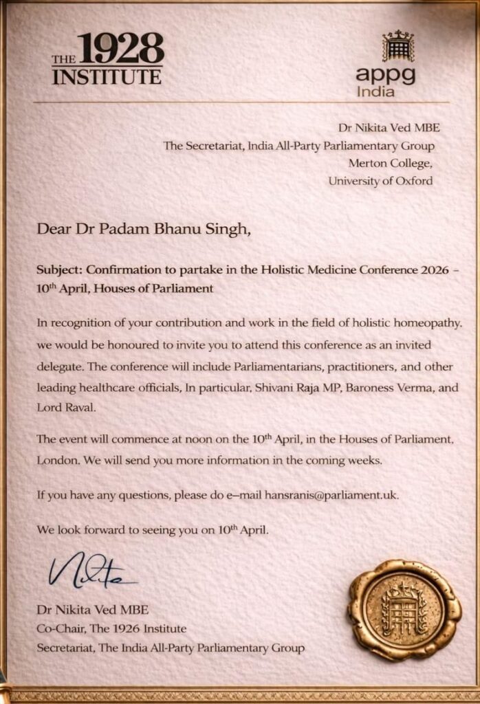 बगहा। बिहार के लिए गर्व का क्षण है कि पश्चिम चंपारण के बगहा स्थित होमिया कैंसर सेवा अस्पताल के प्रख्यात होम्योपैथी चिकित्सक को लंदन में आयोजित अंतरराष्ट्रीय समग्र चिकित्सा सम्मेलन 2026 में विशेष आमंत्रित प्रतिनिधि के रूप में शामिल होने का अवसर मिला है। यह प्रतिष्ठित सम्मेलन 10 अप्रैल को तथा 13 अप्रैल को में आयोजित किया जाएगा, जिसमें विभिन्न देशों के नीति-निर्माता, सांसद, चिकित्सक और स्वास्थ्य विशेषज्ञ भाग लेंगे।