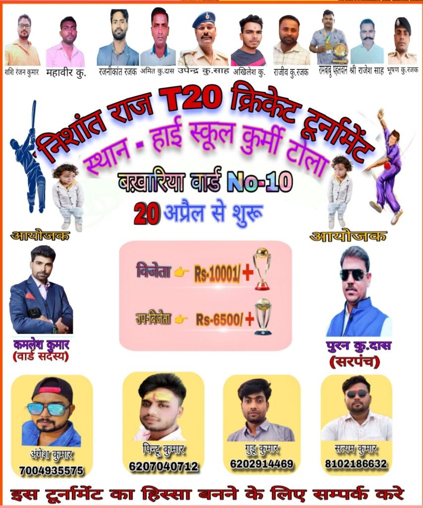 मझौलिया के बखरिया में निशांत राज T20 क्रिकेट टूर्नामेंट का भव्य आगाज